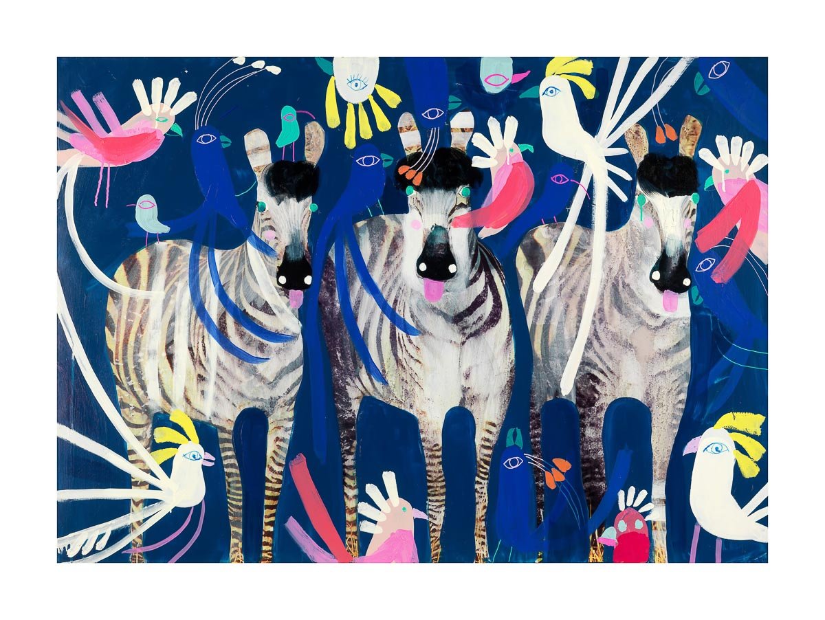 One Flew Over is signature Jessie Breakwell. These fun zebras were part of a body of work created for her exhibition with Jumbled Online.